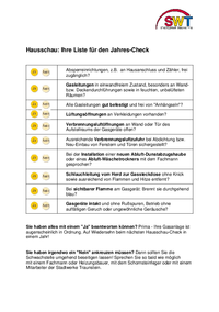 Hausschau: Ihre Liste für den Jahres-Check Absperreinrichtungen, z.B. an Hausanschluss und Zähler, frei zugänglich? Gasleitungen in einwandfreiem Zustand, besonders an Wandbzw. Deckendurchführungen…