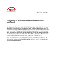 Traunstein, 30.09.2010 Vereinbarung zu Geschäftsprozessen und Datenformaten nach Tenor 3 Die Stadtwerke Traunstein GmbH & Co. KG bieten allen Netznutzern für Ihr Netzgebiet eine Vereinbarung zur…