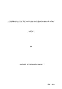 Vereinbarung über den elektronischen Datenaustausch (EDI) zwischen und - nachfolgend „die Vertragspartner“ genannt – Seite 1 von 5 1 1.1 Zielsetzung und Geltungsbereich Die "EDI-Vereinbarung",…